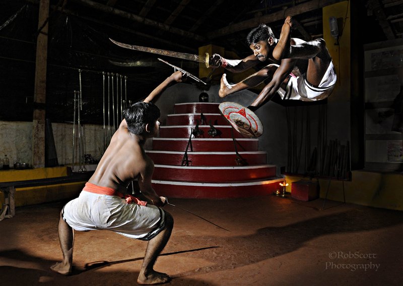 Teachers demonstrate attacking and defensive positions in Kalari, said to be the oldest martial art in the world, Thalassery, Kerala
