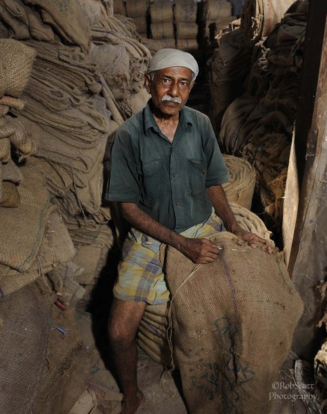 Repairing tea and other sacks for re use and export, Cochin, Kerala